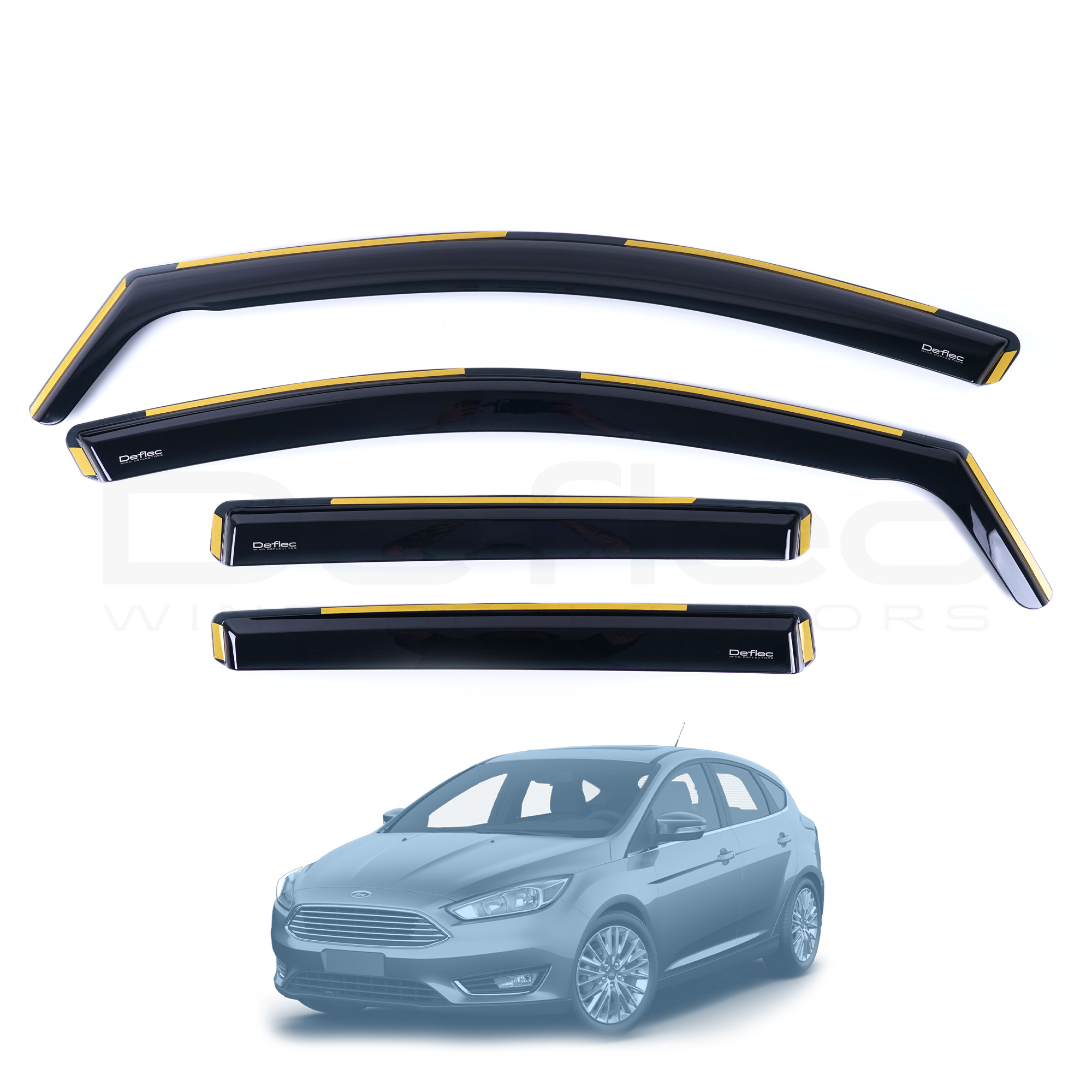 Ford Focus 2018 Onwards Deflec Smoked Wind Deflectors (4pc)
