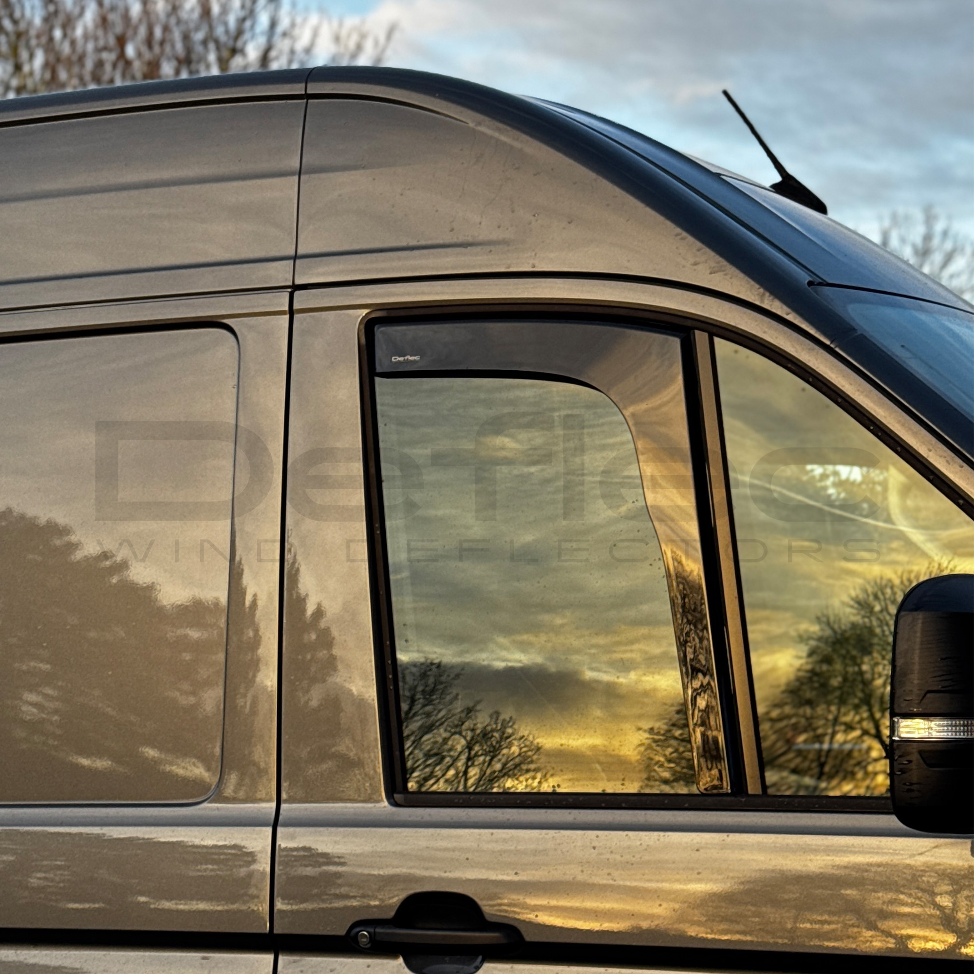 Premium Smoked Wind Deflectors that blend form and function. Improve ventilation and reduce air turbulence in your VW Crafter 2017 Onwards with Deflec.
